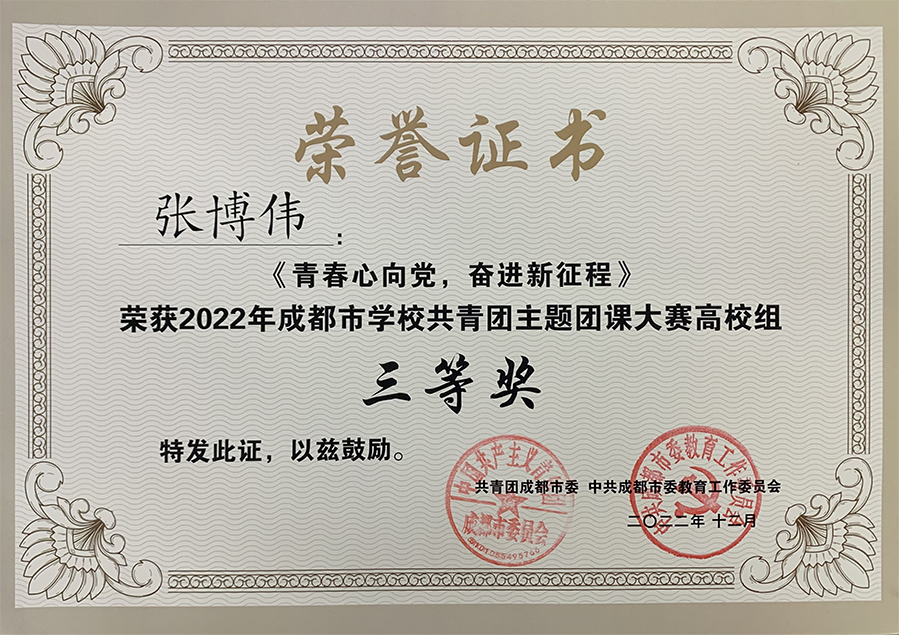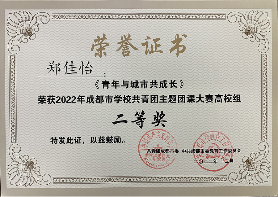 为深入学习宣传党的二十大精神,贯彻落实四川省第十二次党代会及成都市第十四次党代会精神,号召全体团员学生主动参与到“学习二十大 永远跟党走 奋进新征程”主题教育实践活动,共青团成都市委、中共成都市委教育工作委员会联合举办了2022年成都市学校共青团主题团课大赛。四川传媒学院艺术设计与动画学院分团委积极响应号召,选派优秀学生代表参加此次比赛。通过评审组最终评审,我院多名学子荣获佳绩,获高校组个人二等奖一项、三等奖二项。