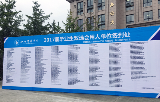 2016年9月23号,我校2017届毕业生大型双选会在学校艺体中心门口火热进行。 此次双选会的举行为我校毕业生就业开拓了更宽的就业渠道,也为用人单位提供了良好的选择平台,体现了学生、用人单位、学校三赢的局面。长期以来,我院高度重视学生实习就业创业工作,院系负责人,辅导员纷纷亲临活动现场为学生提供帮助和建议。