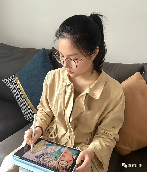 “要尽已所能,不计报酬,帮助他人,服务社会。践行志愿者精神,遵守社会公德,在社会发展中做先锋带头作用,在文明创建中做表率,在构建和谐中做贡献。”这是彭诗韵同学对创作作品的阐述。